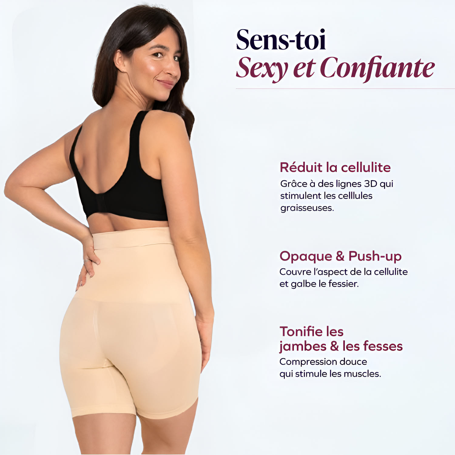 BlissShape™ disparaît sous n’importe quel vêtement grâce à son design sans démarcations. Tu profites d’un look plus harmonieux sans que personne ne devine que tu portes un short gainant. C’est le petit secret parfait pour rehausser ta confiance, peu importe ton style.