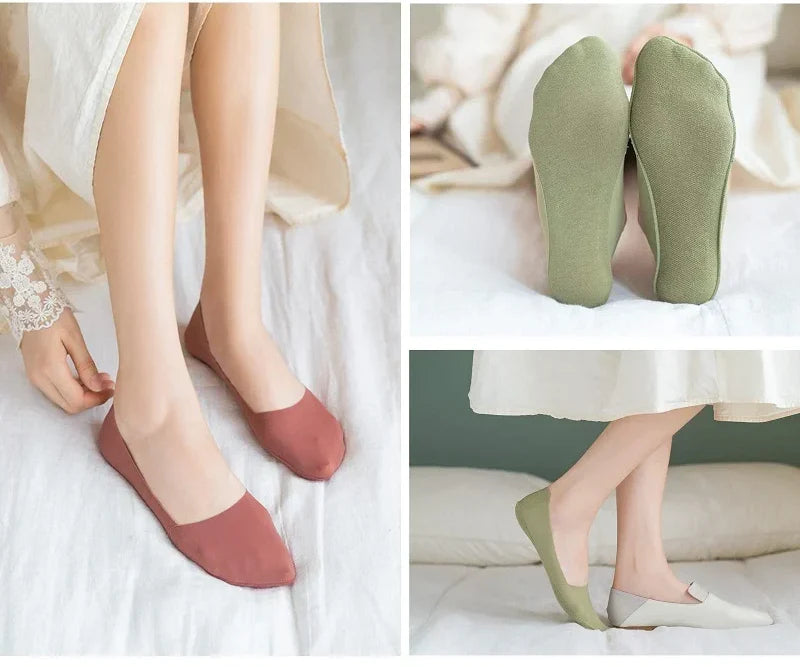 Jetez vos chaussettes embarrassantes qui tombent souvent ! Adoptez nosChaussettes Invisibles Antidérapantes en Soie Glacée, avec un design antidérapant en silicone, elles ne tombent pas dans 99% des cas.