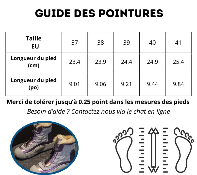 Les bottes sont disponibles dans les tailles allant de 35 à 40.