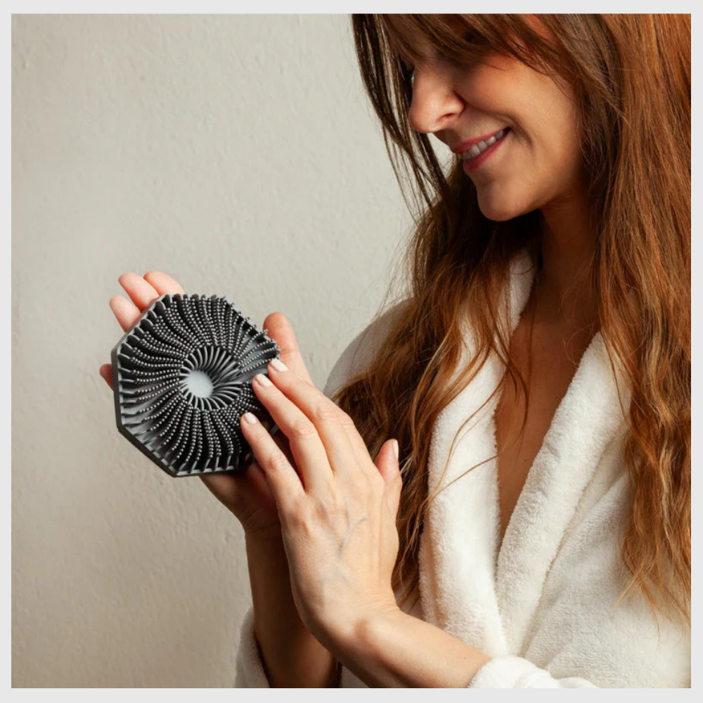 Découvrez la sensation d’une peau douce et fraîche grâce à PureSkin™. Facile à tenir, cette brosse épouse parfaitement vos mouvements pour un nettoyage confortable et agréable, transformant chaque douche en véritable moment de soin.